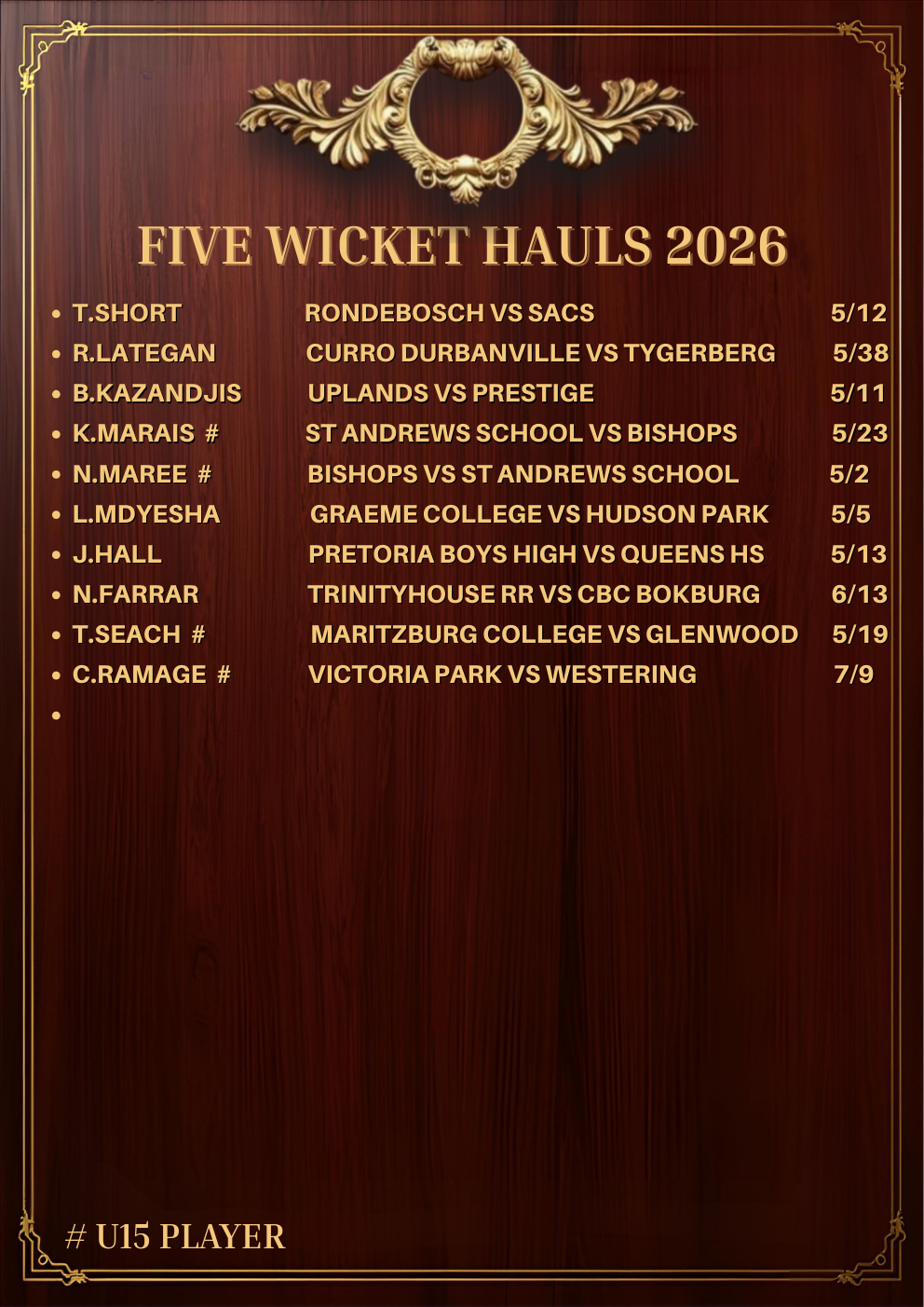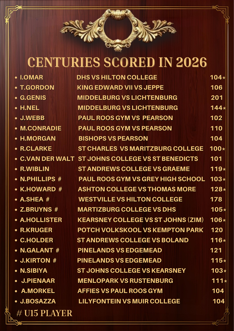 Updated during the course of the season, the list reflects a tradition as old as the game itself: performances of substance are recorded, remembered and respected. If your name appears here, it’s because you delivered when the contest demanded it. Well done!