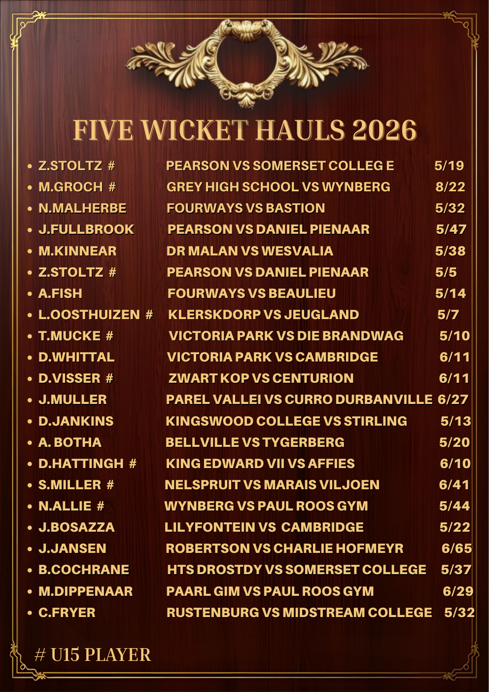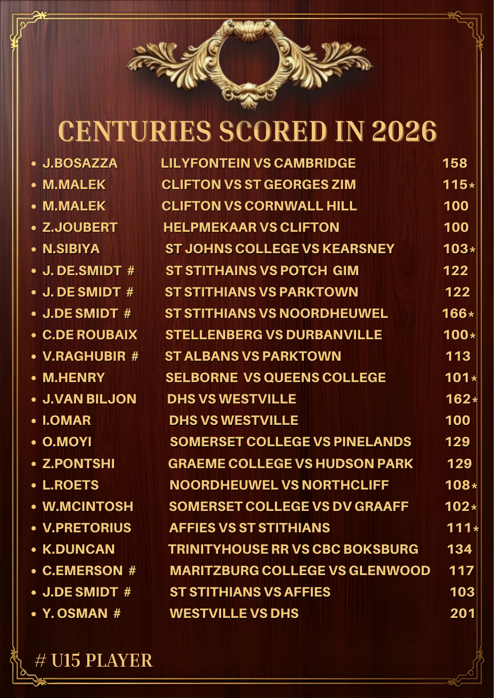 This rolling honours board tracks those performances across the 2026 season. A century scored under pressure. A five-wicket haul that turns a match on its head. These are the moments that linger long after the boundary ropes are packed away.